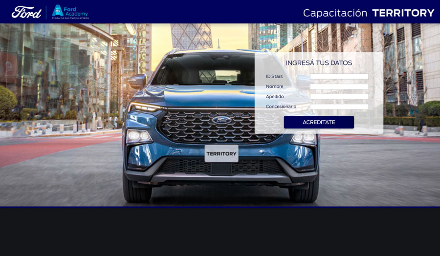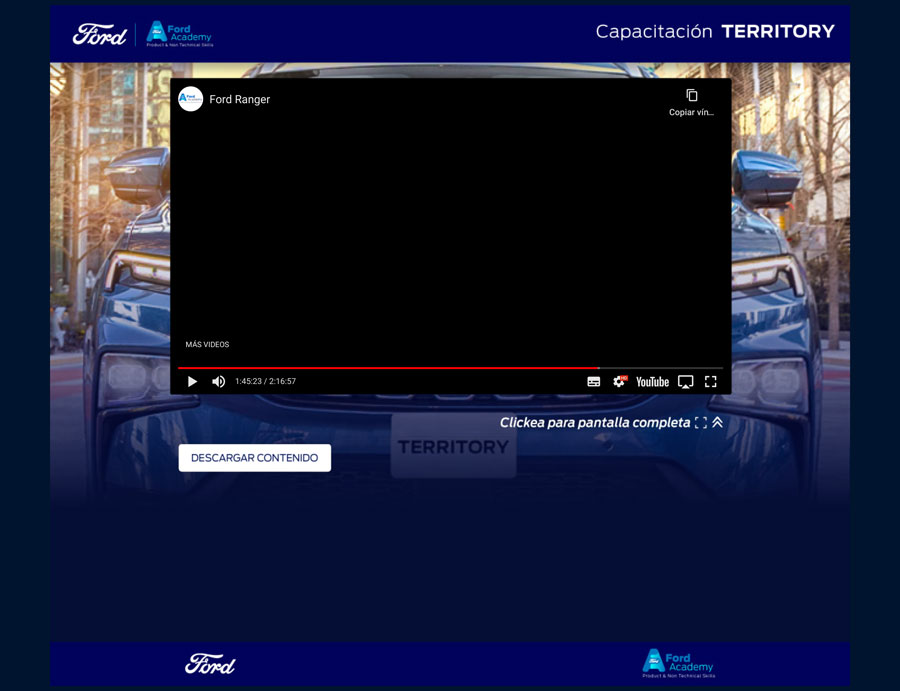 Programación de sitio web para capacitación online de vendedores Ford con streaming de video y descarga de archivos.