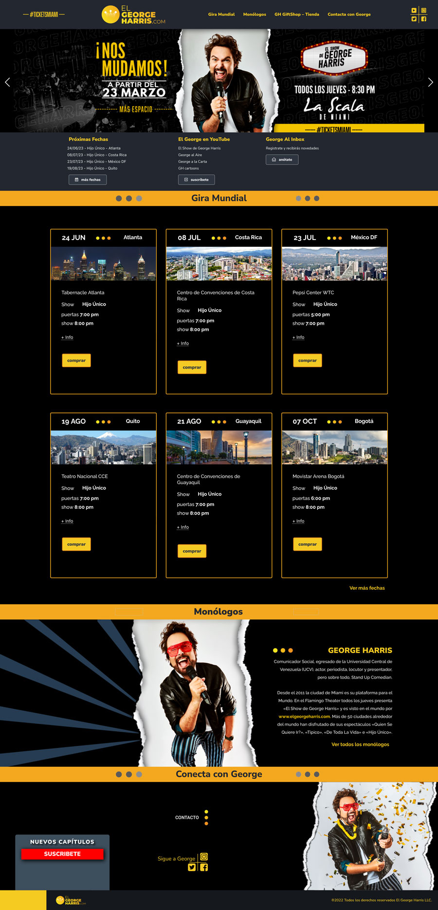 Actualización y rediseño de sitio web de comediante venezolano George Harris.