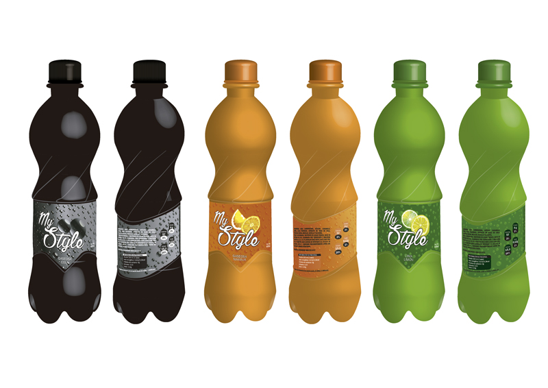 Diseño y prototipado de botella y etiqueta para gaseosa.