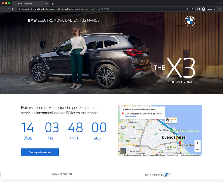 Diseño y programación de landing para registro al evento Electromovilidad de BMW.