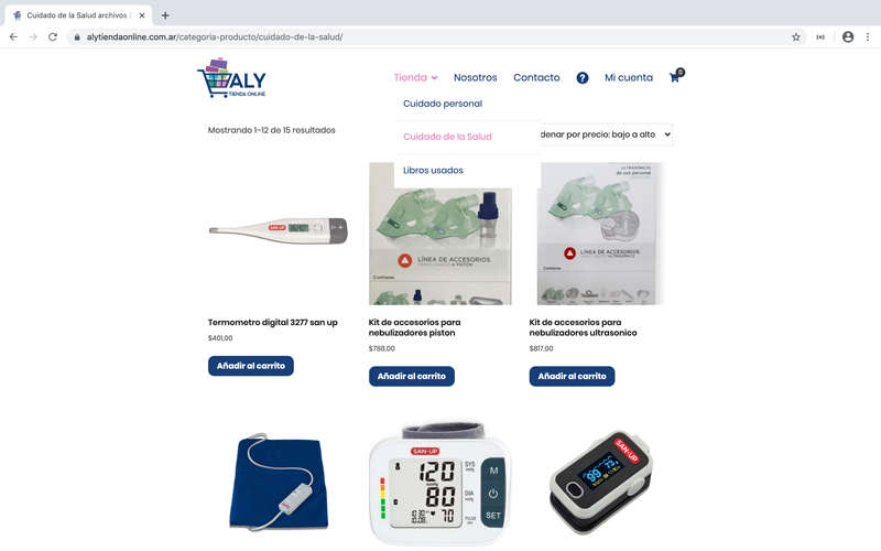 Diseño, desarrollo e implementación de web responsive con tienda virtual. www.alytiendaonline.com.ar